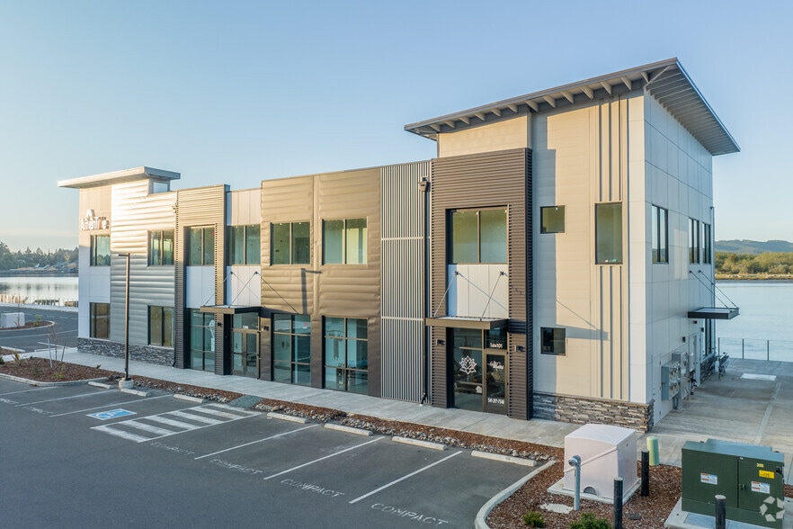 Premium Waterfront Executive Office Space in Coos Bay Village! Now available for lease: 2,026 square feet of premier executive office space located in the heart of Coos Bay Village, one of the area’s newest and most desirable waterfront developments. This high-end professional suite offers stunning panoramic views of Coos Bay and the surrounding mountains, creating an impressive setting for clients and staff alike. The building features newer construction with full ADA accessibility, a modern elevator, and a complete fire suppression system, ensuring both comfort and compliance. Designed for discerning businesses, the space delivers a superior, high-class professional environment rarely available in the local market. Positioned with excellent visibility along Highway 101, the property benefits from strong daily traffic counts and exceptional exposure. Surrounded by a dynamic mix of regional and national retailers and professional offices, including Starbucks, this location offers built-in convenience, walkability, and prestige. With excellent neighboring tenants, competitive lease rates, and a waterfront setting that elevates any brand, this is a standout opportunity for executive offices, professional services, medical, or corporate users seeking a premier presence in Coos Bay. This is the last available space in Coos Bay Village and in high demand, don't miss your chance to relocate or expand your growing business. Call today!