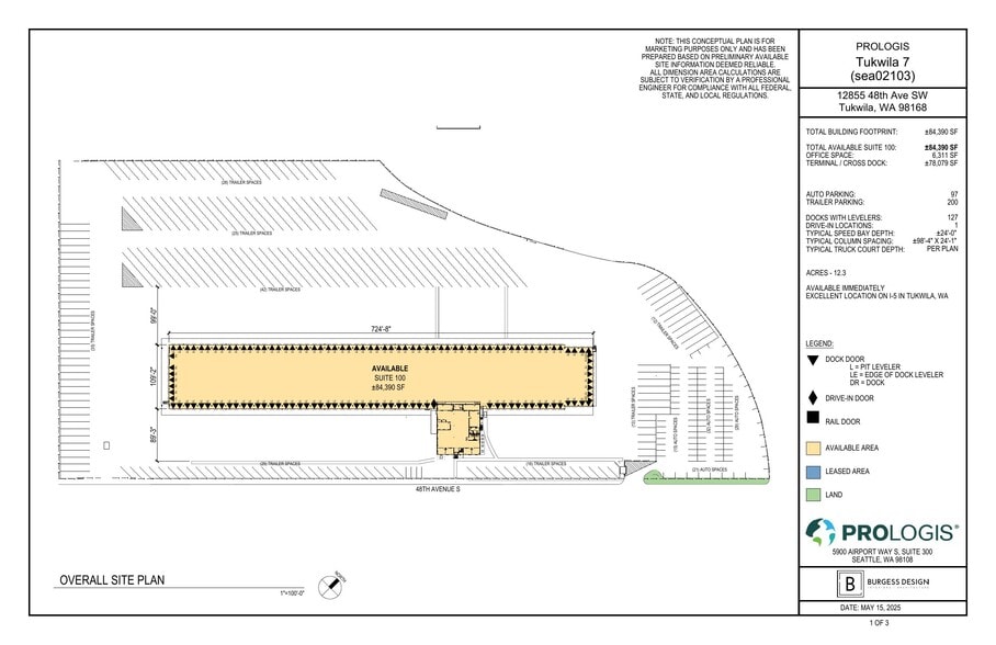 Prologis Park Tukwila 7 12855 48th Ave S 84 290 pi² d'espace disponible • Industriel • Tukwila, WA 98168