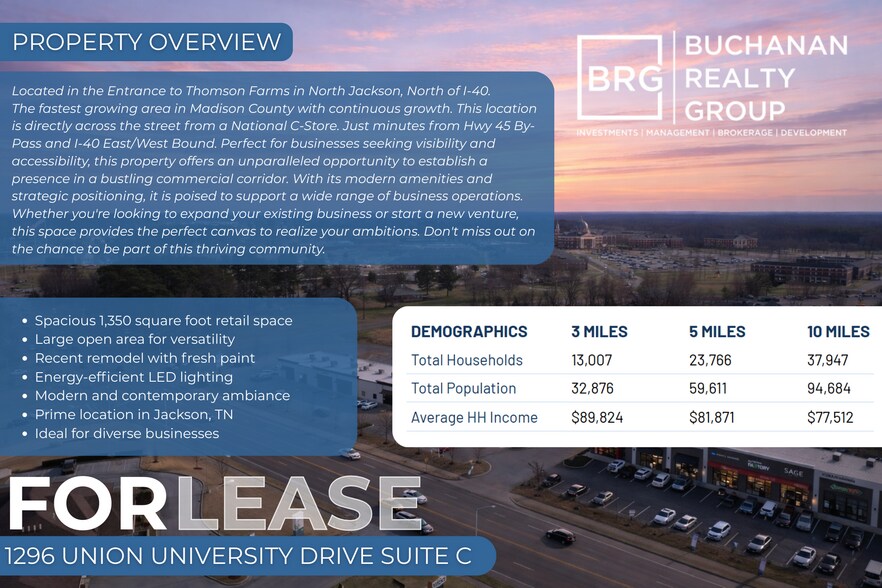 Located in the Entrance to Thomson Farms in North Jackson, North of I-40. The fastest growing area in Madison County with continuous growth. This location is directly across the street from a National C-Store. Just minutes from Hwy 45 By-Pass and I-40 East/West Bound. Perfect for businesses seeking visibility and accessibility, this property offers an unparalleled opportunity to establish a presence in a bustling commercial corridor. With its modern amenities and strategic positioning, it is poised to support a wide range of business operations. Whether you're looking to expand your existing business or start a new venture, this space provides the perfect canvas to realize your ambitions. Don't miss out on the chance to be part of this thriving community.