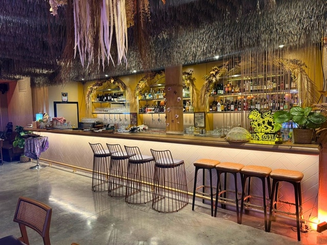 It is spread all over the ground floor, it also has a fully fitted kitchen and a separate bar area.