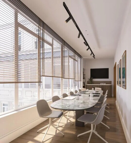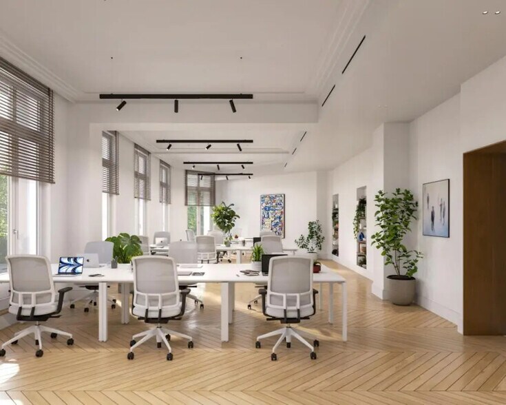 Les surfaces disponibles représentent un total de 1 278 m², divisibles à partir de 619 m². Les plateaux, situés dans un immeuble haussmannien rénové, sont livrés entièrement refaits à neuf. Ils bénéficient d’un parquet en Pointe de Hongrie et à l’anglaise, de faux plafonds acoustiques, et d’un système de climatisation CPCU combiné à la fraîcheur naturelle de Paris. Chaque plateau dispose de sept sanitaires, deux douches, deux espaces déjeunatoires, ainsi que d’un double accès. Les occupants profitent également d’un local à vélos et d’une conciergerie automatique. L’immeuble comprend un accueil, une gardienne, un ascenseur, et des parties communes de haut standing. Plusieurs parkings se trouvent à proximité immédiate.
