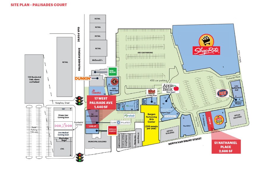 Palisades Court 13 Nathaniel Pl 2 686 pi² d'espace disponible • Commerce de détail • Englewood, NJ 07631