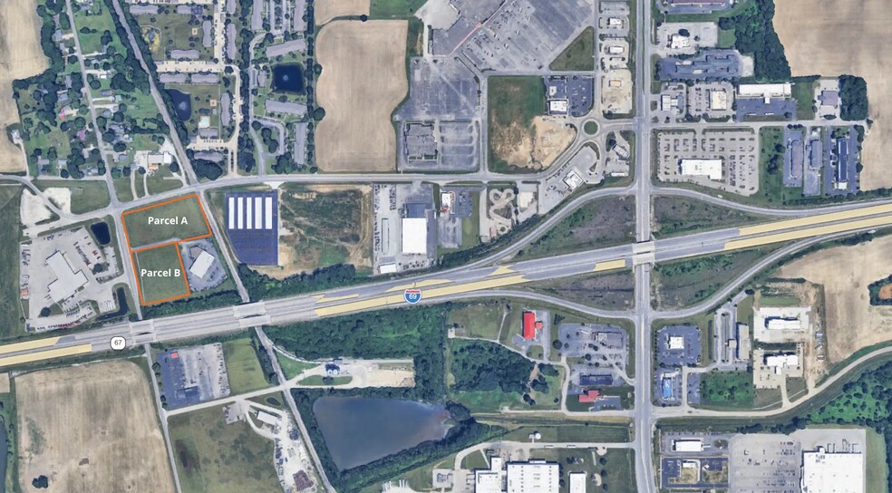 Two development parcels adjacent to I-69 interchange; highly visible, growth-oriented location. Sale price $650,000 for combined 6.07 acres; may also be purchased separately (Parcel A $437,500, Parcel B $288,750)