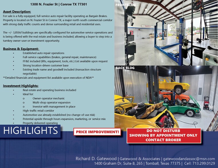 Bargain Brakes 1308 N Frazier St 3 850 pi² Industriel Immeuble Conroe, TX 77301 1 921 613 $ CAD (499,12 $ CAD/pi²)