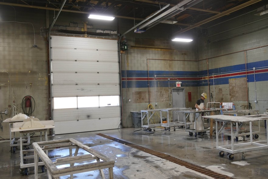 - L'aire d'atelier comprend de l'air de maquillage et un puisard de tranchée avec accès à la cour extérieure.