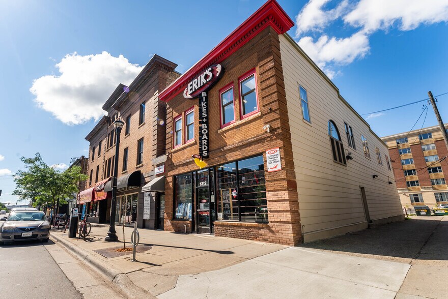 Disponible à louer (ou à vendre) - Bâtiment d'Erik's Bike Shop situé au cœur de Dinkytown. Excellente visibilité sur la 4e Rue, à quelques pas du campus principal de l'Université du Minnesota. 5 espaces de stationnement à l'arrière. Plafonds voûtés sur les deux étages; environ 3 800 pieds carrés finis + sous-sol. Des forfaits d'améliorations locatives (TI) sont disponibles pour les locataires qualifiés. Contactez le courtier pour organiser une visite dès aujourd'hui!