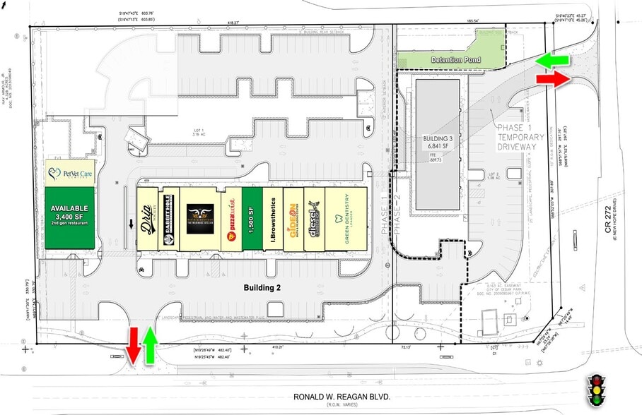 • Nouvelle bande commerciale multi-locataires flambant neuve située dans une zone en plein développement à Cedar Park • Située à un coin stratégique, à une intersection avec feux de circulation juste au nord de FM 1431/Whitestone • En face du nouveau complexe de baseball Perfect Game de Cedar Park, dont l'ouverture est prévue en 2024 • La rue New Hope sera bientôt prolongée jusqu'à Sam Bass Rd • Zonage : GB - Commerce général