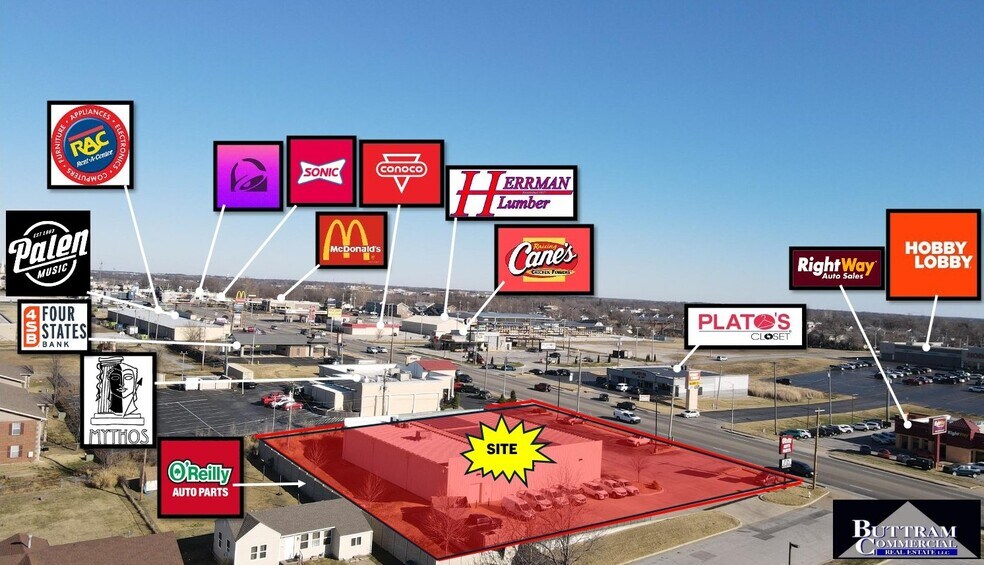 Very high-visibility Range Line property just north of the E. 15th Street stoplight (entrance to Wal-Mart Supercenter). Subject to relocation to new location within not more than 120 days. Great access-no medians! Zone C-3