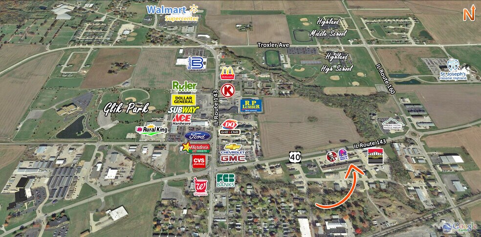 3,040 SF Newly remodeled medical office suite in Woodcrest Plaza. The office includes a staff lounge with kitchenette, waiting room with reception desk, (7) exam rooms, (1) lab/documentation area and restrooms, This well-appointed space is ideal for efficient and versatile office operations. The medical office space is strategically situated in Highland, Il , just off Highway 40, making it easily accessible for transportation and logistics. Its close proximity to St. Louis, MO ( 30 Miles), offers convenient access to a major metropolitan area.