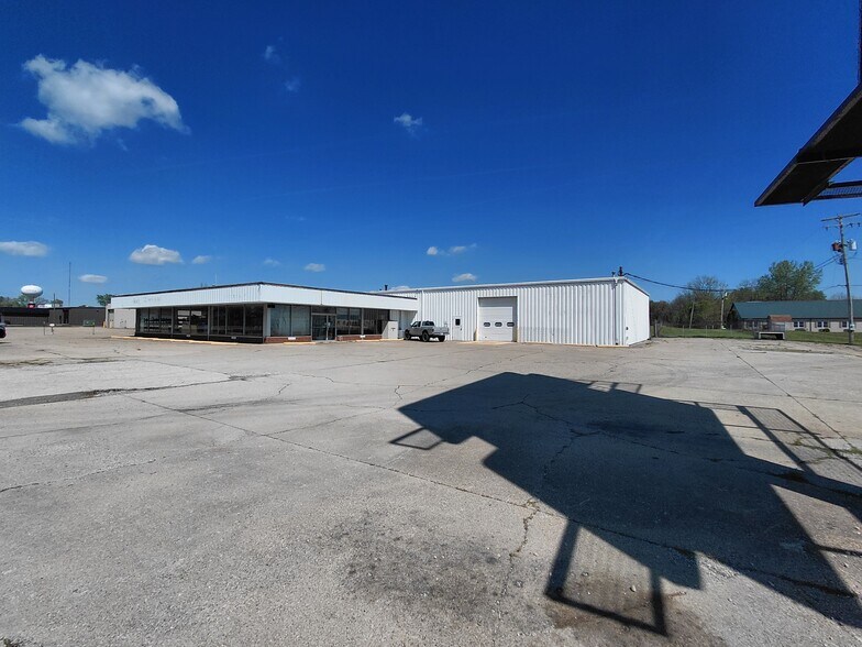 Prime location on the edge of Attica on St Rd 28. The property offers phenomenal visibility with lots of traffic. It designed as a car dealership, and offers a large parking area up front, a comfortable show room with offices, break room, and rest rooms. The warehouse has high ceilings, and 3 overhead doors. It is outfitted with two large car lifts that can come with the property. The property is outfitted with 400 amps and 3 phase power. Behind the property is a large fenced in yard perfect for outdoor storage. Currently the owner is occupying the majority of the building, and intends to vacate with a sale. Currently a portion of the warehouse 2500 sq ft is rented month to month.