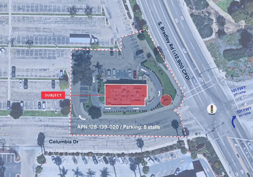 Existing drive thru building at the signalized corner of S. Bradley Rd & 101 Freeway off ramp