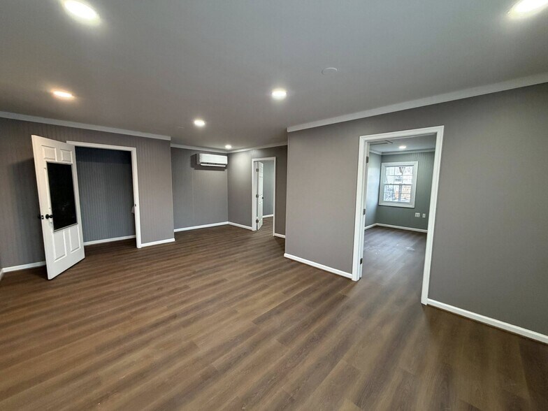 This is an open space that can be built out to use however you need. Adjacent businesses including eco friendly landscaping and native plant nursery, vintage and antique store, a realty office and a garden and goods store. All the businesses in the building are women owned and operated. Office space is in a separate private building with your own parking. No bathroom or plumbing- access to those inside the main building. Looking for likeminded company to join our team and cross promote services and events. Available immediately. The spaces available are in the far left building in the photo and the central red arrow- the blue buildings on the left side of the church are for rent.