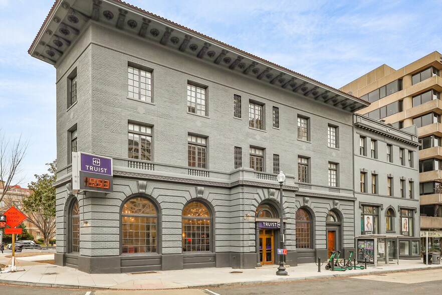 Le charme et le caractère distinctifs de l'édifice Bank sont saisis sur ses quatre étages avec une vue magnifique sur DuPont Circle et les avenues Connecticut et Massachusetts. Le bâtiment magnifiquement restauré contient 21 000 pc d'espace commercial total avec 13 000 pc de bureaux sur ses 3 étages supérieurs et 8 000 pc d'espace de vente au détail de l'avenue Connecticut. L'édifice est ancré par Truist Bank et est situé juste en face de la station Metrorail et au centre de tous les magasins, restaurants et divertissements de DuPont Circle.