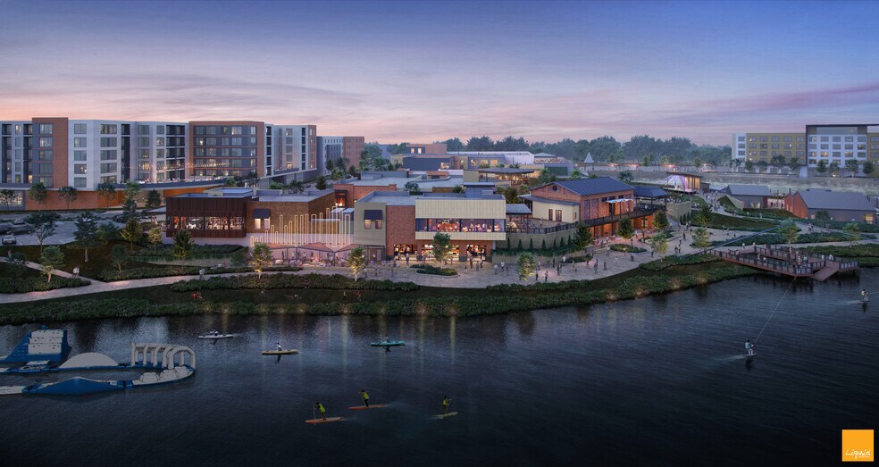 Le lac offre une destination à usage mixte pour le commerce de détail, la restauration, le divertissement et les sports d'action. Le développement total s'étend sur 105 acres de terrain et offre des expériences uniques illimitées. Il existe une variété d'aménagements différents, dont 150 000 SF d'espaces commerciaux et de divertissement, 100 000 SF d'espaces de bureaux de classe A, 750 unités multifamiliales, et plus encore.