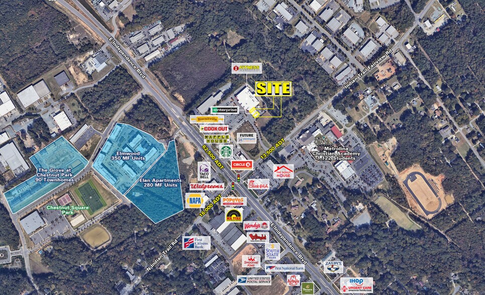 - Les locataires à proximité comprennent Fitness Connection, Chick-Fil-A, Starbucks, Walgreens, Cookout, etc.