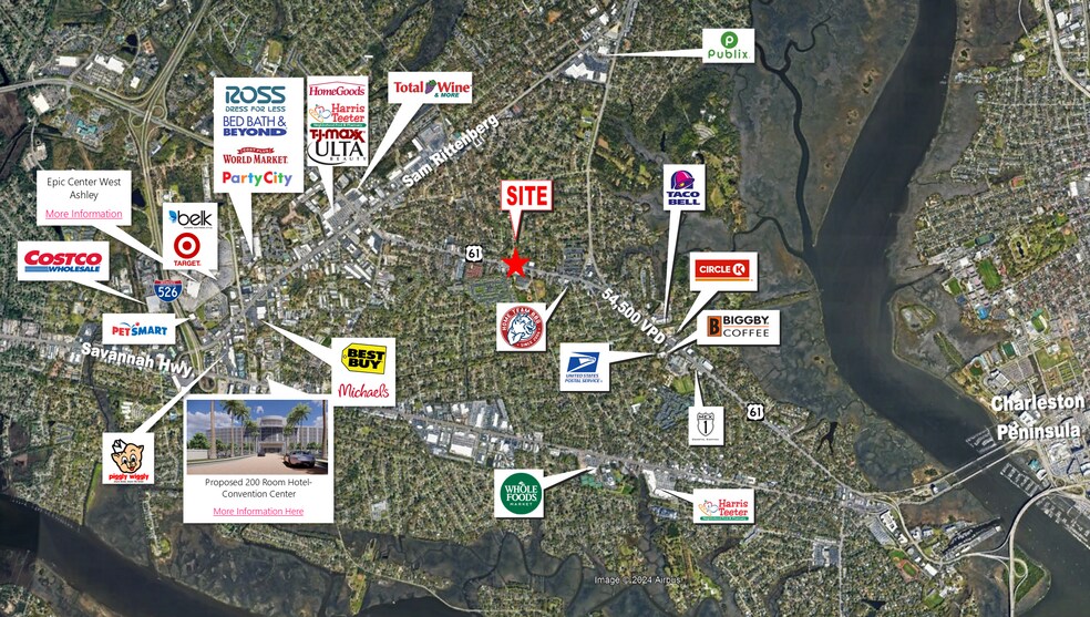 3 parcelles assemblées à l'angle du chemin Ashley River (39 200 VPD) et de la promenade Heathwood à Charleston, en Caroline du Sud.