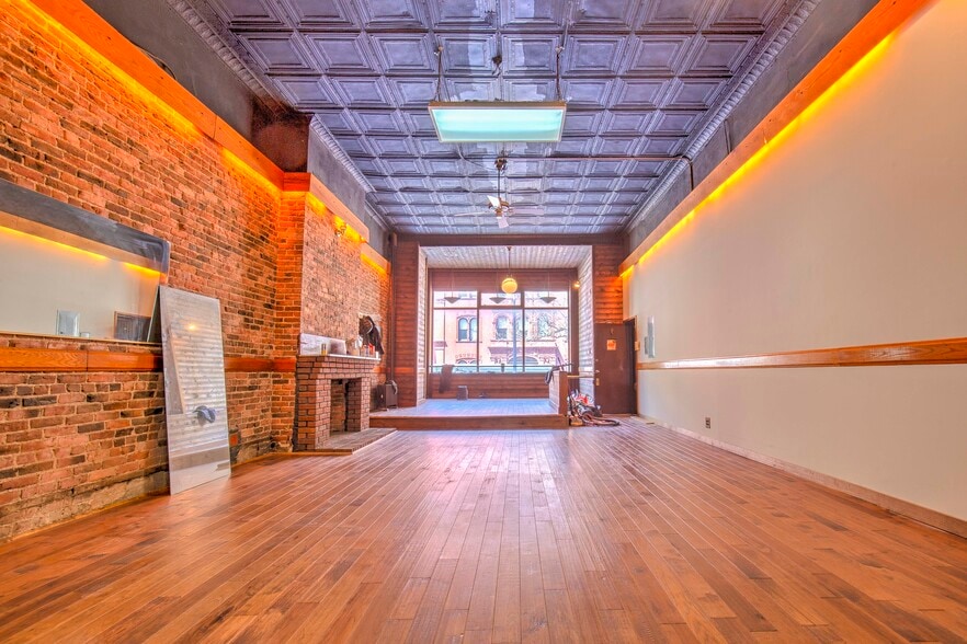 One of a kind space with incredible features and a amazing location. This space has dramatic high ceilings with gorgeous original tin ceilings. There is custom lighting throughout the 18ft by 90 ft long space. Take note of the phone booth, stained glass, and brick decorative fireplaces. This space will wow you and your clients and customers.