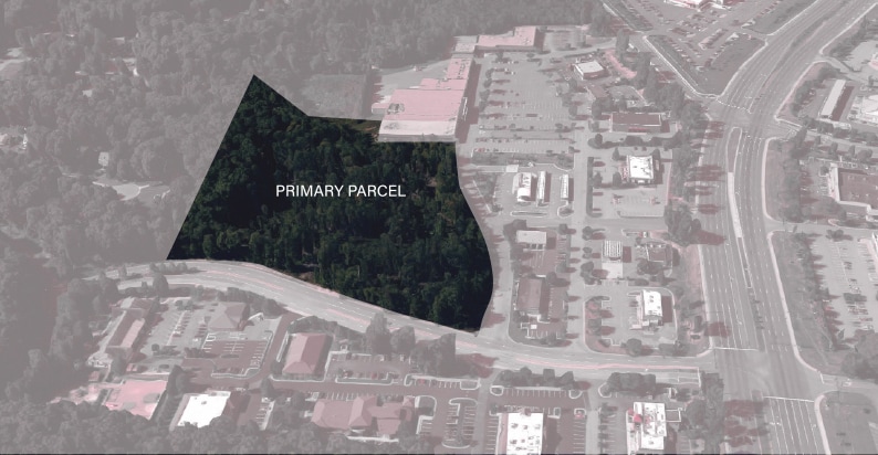 Parcel 7266714971, 6800 Raised Antler Plaza, is comprised of internal roadways and will contribute 1.71 acres to the primary site for purposes of rezoning, resulting in 10.14 acres gross. This internal road system should serve as the primary point of access for new development on 13851 Raised Antler Circle.