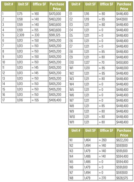 - Thirty-eight (38) standard flex units featuring fully built office and warehouse space