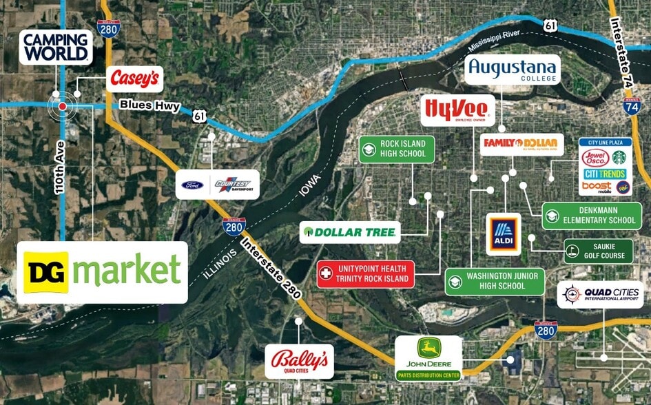 DG Market 13932 110th Ave 12 704 pi² Commerce de détail Immeuble Davenport, IA 52804 3 581 301 $ CAD (281,90 $ CAD/pi²) 6,35% Taux de capitalisation