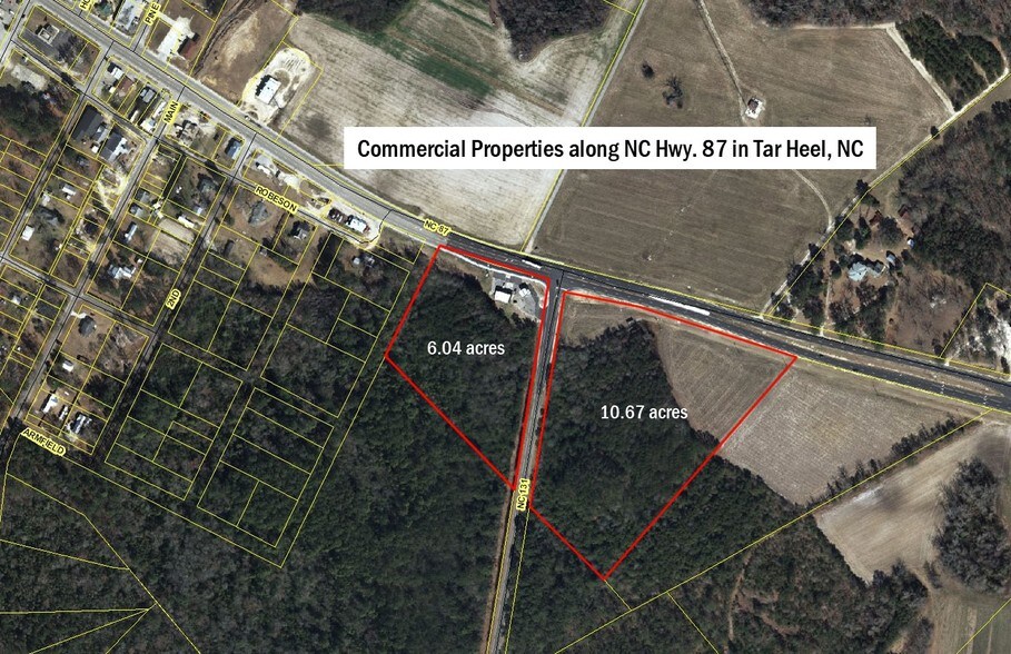 High-visibility corridor. The 6.04-acre parcel, zoned commercial, includes a 1,500 SF building currently operating as a convenience store, ideal for immediate income or future redevelopment. Directly across the highway, the 10.67-acre parcel is zoned RA, providing additional expansion or complementary use options for retailers or developers seeking a foothold in a growing market. With a favorable zoning mix and strong traffic exposure, this opportunity is well-suited for a wide range of commercial or mixed-use concepts. Just down the street from the largest hog plant in the United States. This corner is Hwy 87 and Hwy 41, busy intersection in a small town with lots of truck traffic