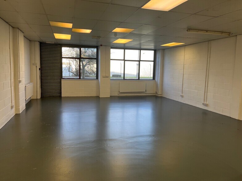 Unité d'affaires de 2 étages avec porte de chargement. Entrepôt, atelier/atelier au rez-de-chaussée, bureaux au premier étage. Terminer la terrasse avec stationnement alloué.