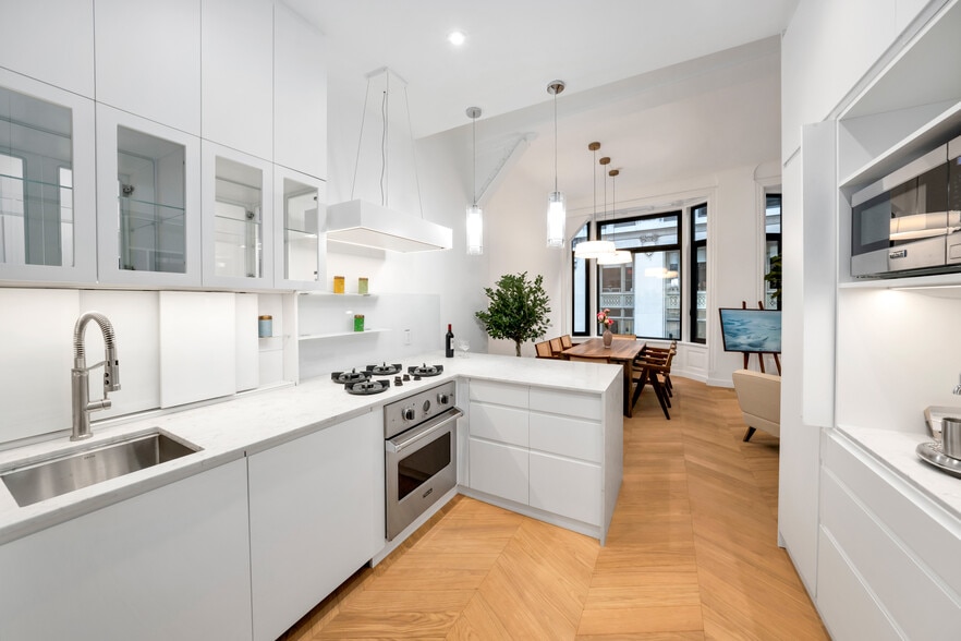 Built within a cast-iron structure originally engineered to support heavy jewelry safes, the building retains rare architectural features, including historic bay windows—among the first ever constructed in New York—originally designed to provide diamond dealers with optimal natural light. Today, these same windows flood each residence with exceptional natural light, a quality rarely replicated in modern construction.