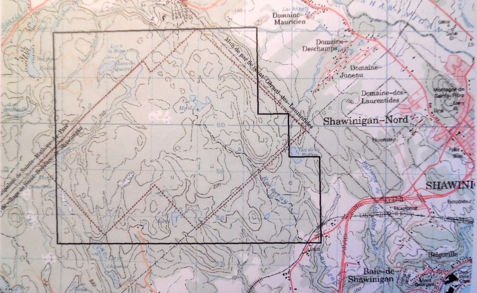 ZONAGE BLANC D'UN GRAND DOMAINE POUR LA VENTE D'UN TERRAIN 3 485 acres de terrain avec plusieurs lacs (151 millions de pieds carrés) Permis de logement et permis de construction résidentielle Gisements miniers identifiés de zinc-cuivre et de cobalt MONAXXION Vaste zone forestière À 7 kilomètres de la ville de Shawinigan À 39 kilomètres de la ville de Trois-Rivières par l'autoroute 55 Zonage blanc permettant le lotissement pour un projet résidentiel Environ 19 kilomètres de routes forestières sur les propriétés La propriété fait partie du sous-domaine bioclimatique du bouleau jaune érable buisson. Érable à sucre, érable rouge, bouleau blanc, tremble tremblant, sapin baumier et épinette blanche.