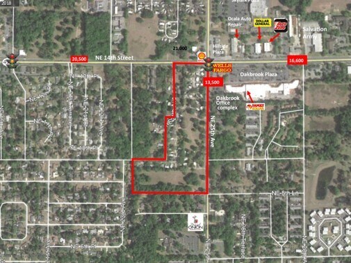 Situé à l'angle sud-ouest de l'intersection avec signalisation de la 14e rue nord-est et de la 25e avenue NE - deux des routes collectrices à quatre voies les plus achalandées d'Ocala. Les biens sont situés dans une zone d'opportunité, ce qui offre une excellente occasion fiscale si la propriété est mise en valeur par un fonds de promotion (aucune récupération de l'amortissement ou gain en capital si le bien aménagé est détenu pendant plus de 10 ans).