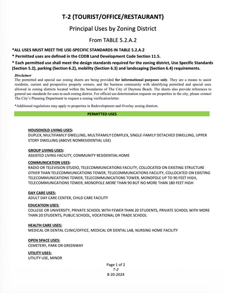 | Zonage | T-2 - Zonage T-2 - District de Développement Touristique Ville de Daytona Beach - Consultez le Code de Développement Territorial de Daytona Beach pour les utilisations |