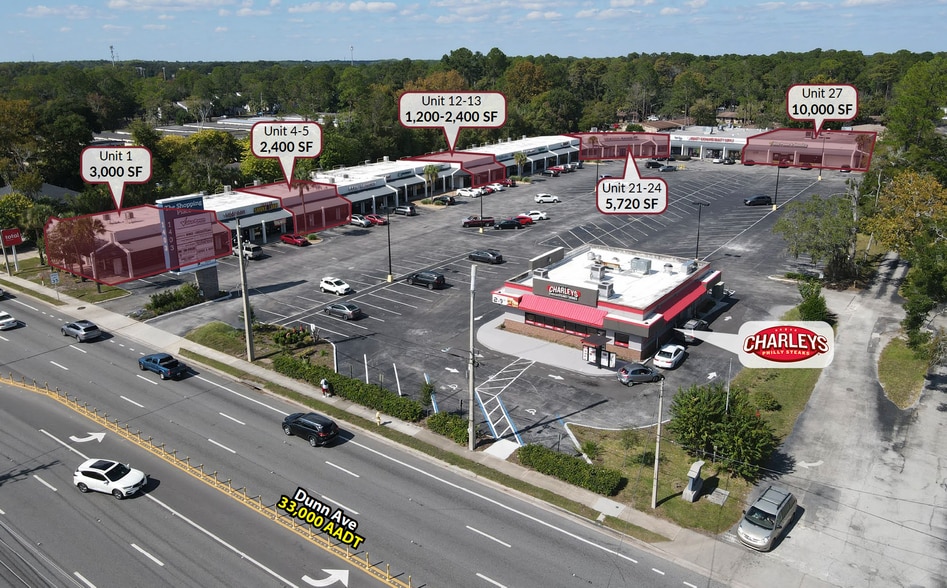 Located on the bustling Dunn Avenue corridor and just 1 mile from I-95, this prime shopping center o?ers unbeatable visibility and easy access for local and regional tra?c. The property features ample parking, a resurfaced lot, and tall signage that ensures your business stands out. Recent upgrades include a modernized façade and a brand-new pylon sign, giving the center a fresh, updated look. Surrounded by a mix of national and regional tenants, this location provides the perfect environment for retail, o?ce, or service-based businesses seeking a high-tra?c, high-exposure destination. Don’t miss the opportunity to position your business in this vibrant, well-established center!