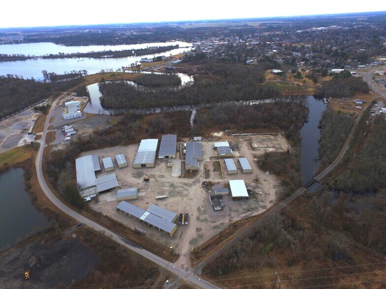 Turnkey Lumber manufacturing facility for sale in Elizabeth City with use restriction for wood treatment. Subject parcel is 33.72 acres with roughly +/- 20 acres developed and usable zoned I-2 and a 1AC parcel zoned R-15 across Knobbs Creek. Very heavy duty 3 phase 480 amp electrical service, central sewer, 5,040 sq ft of office and breakroom, 166,215 square feet of metal structures with metal roofs, all replaced/repaired or renovated in 2020. Railroad track adjacent on active railroad track with active spur on the property, and river frontage with a history of importing and exporting via barges. Detailed inventory of building and structure sizes, construction (0 walls under roof up to 4 walls), year built, foundation (concrete vs asphalt), and values available in appraisal report in documents. This site employed 140 people at one point in the recent past.