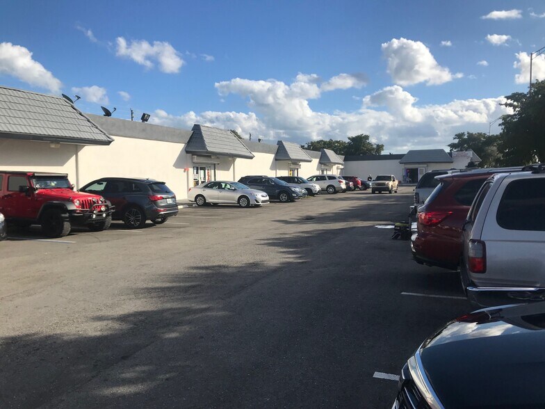 Propriété située à North Miami ayant une grande façade sur l'avenue NW 7 achalandée et beaucoup d'espace de stationnement à l'avant et à l'arrière.