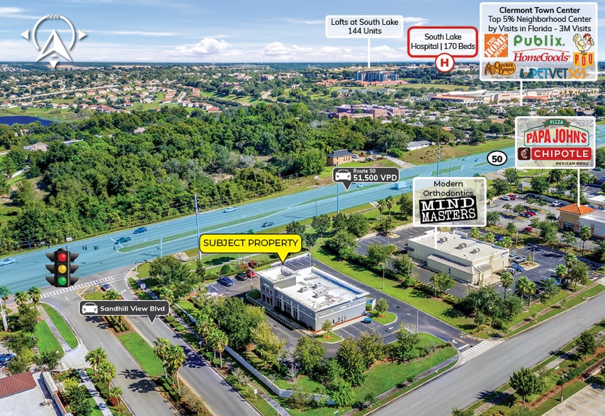 Built in 2008, this Verizon Wireless location has operated continuously for over 15 years and is secured by a net lease with over four years of term remaining. The property is shadow-anchored by major national retailers, including Lowe’s, Hobby Lobby, and Crunch (coming soon), with this Lowe’s ranking in the top 14% of stores nationwide by visits. Situated at a signalized intersection on Route 50 with over 51,500 vehicles per day and just 0.6 miles from Highway 27(47,500 VDP), the site benefits from high traffic exposure. It is surrounded by strong-performing shopping centers, such as Clermont Town Center and Clermont Landing, which attract millions of visitors annually. Located in one of Central Florida’s fastest-growing cities, the population within a five-mile radius has grown over 41% since 2010, with continued strong growth projected.