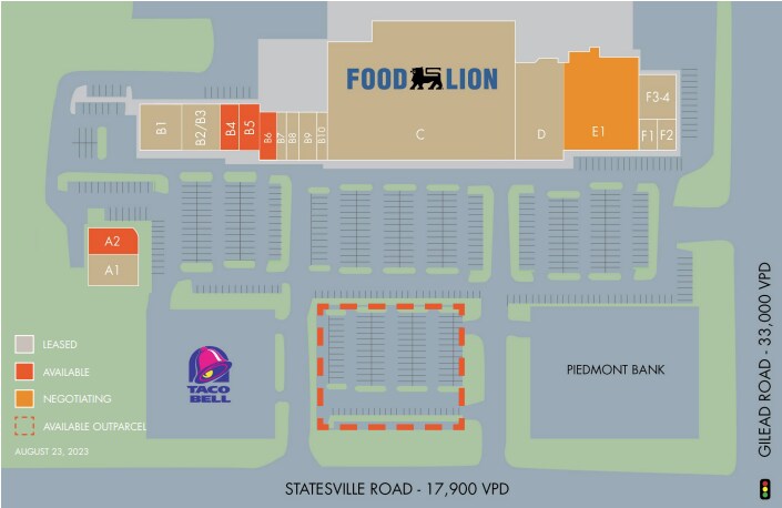 Ancré par un Food Lion de 40 100 pieds carrés, Huntersville Square offre une excellente visibilité depuis l'une des principales artères de Huntersville, le chemin Gilead (33 000 VPD)