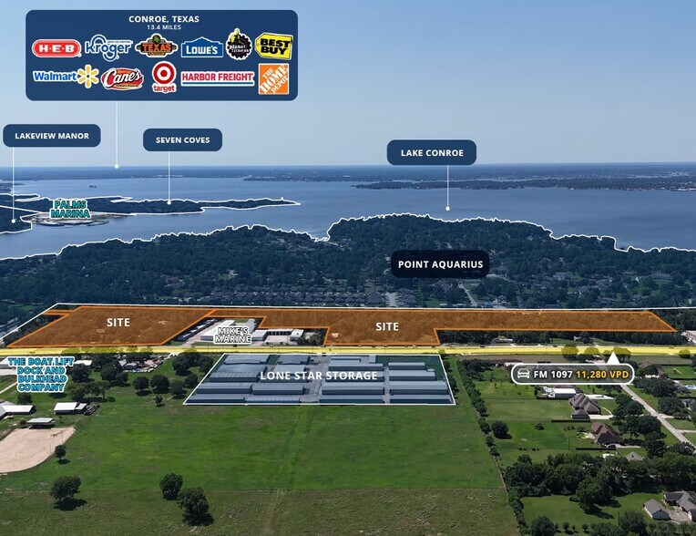 Will subdivide this +/- 21.25 acre development site located on 14217 FM 1097 West Road that is situated within the rapidly growing Willis market in Montgomery County. Bordering Point Aquarius, this tract offers great visibility, three points of access along FM 1097, and one point of access on Point Aquarius Boulevard in a high-traffic area. With dual frontage on FM 1097 West Road of +/- 635 feet and +/- 534 feet, this site presents a prime opportunity to enter this strategic location with immediate ingress and egress into Willis, Montgomery, Conroe, and Interstate 45 which is further enhanced by the widening of FM 1097 West Road. The Eastern position of this site has access to available utilities by Point Aquarius MUD, supporting a wide range of development opportunities including residential, commercial, or mixed-use projects. While lying roughly 1/4-mile East of Lake Conroe, the site is free of any floodplain or floodway and is unencumbered by any zoning restrictions. With detention to be determined, the property offers tremendous flexibility in site planning. The site is ideally placed to capitalize on the explosive growth of Montgomery County and surrounding communities that have spurred a host of new developments, like the future Willis ISD High School Complex, providing a rare opportunity to secure a significant land position along one of the area’s major thoroughfares