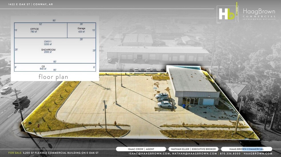 Built in 2024, this 3,200 SF retail/automotive building sits on a generous 26,571 SF lot along Conway’s premier East Oak Street commercial corridor. This rare turnkey opportunity features a polished showroom, dedicated office area, and a functional service garage, offering an ideal foundation for automotive, retail, or service-oriented users. Its position near Conway Commons provides exceptional visibility, high daily traffic, and the versatility to accommodate a wide range of future uses from specialty retail to professional services to light automotive operations.