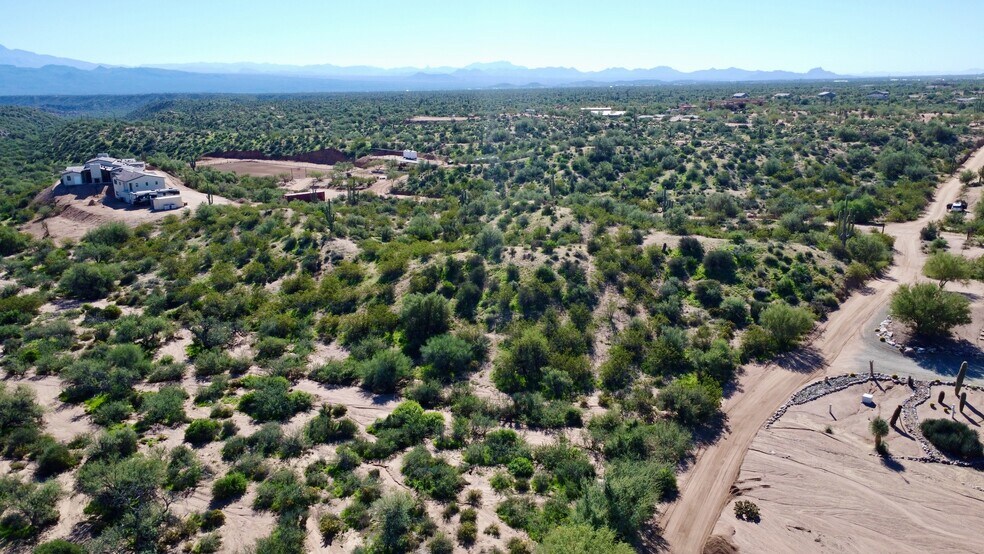 7.67 AC equestrian dream: hilltop homesite + wide, usable lower bench ideal for arena/barn/turnouts. Large-acreage, million-dollar neighbors; private roads kept smooth—easy trailering. A few hundred feet to Tonto National Forest & Granite Mountain pr