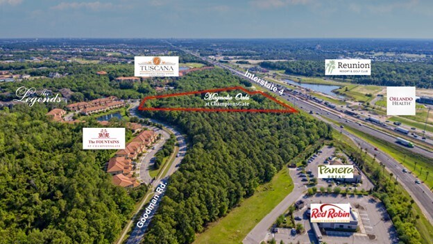 Ce site de développement commercial de plus de 10 acres convient au développement résidentiel, hôtelier, motel ou commercial touristique à haute densité. L'utilisation future des terres de la propriété est commerciale touristique, ce qui permet jusqu'à 40 unités d'habitation/acre utilisable. Adjacente au développement à usage mixte ChampionsGate, cette propriété a environ 950 pieds de façade sur l'I-4 et se trouve à proximité du complexe Reunion Resort, de Celebration et de toutes les attractions de la région.