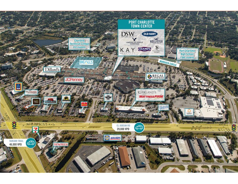 - Located at the intersection of Port Charlotte's two major roads: Tamiami Trl (48,500 VPD) and El Jobean Rd (28,500 VPD)