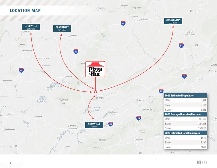 Pizza Hut - Pineville KY 14455 U.S. Route 25 E 2 674 pi² Commerce de détail Immeuble Pineville, KY 40977 599 647 $ CAD (224,25 $ CAD/pi²) 7% Taux de capitalisation