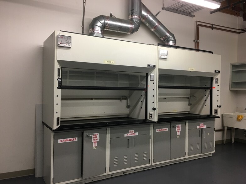 +-1,467 SF R&D lab office space available for lease / rent. Equipped with two fume hoods, a lab sink and lab benches. It comes with a large open office area, one roll-up / grade level door and a bathroom. Ideal for wet or dry lab.