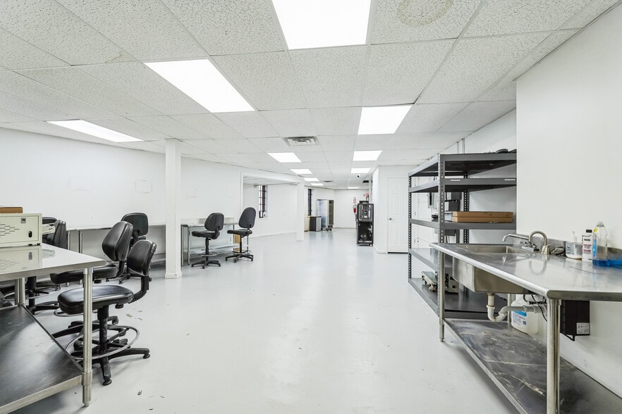 The interior has been thoughtfully updated over the past three years to meet today’s business standards. A spacious gallery-style reception area sets the tone for clients and visitors, complemented by a dedicated conference room and a comfortable break room with kitchenette. The layout includes two expansive lab or manufacturing areas—one on each level—providing versatility for production or technical work. Private offices, including an executive suite and additional offices overlooking the main floor, create an efficient workspace for leadership and staff alike.