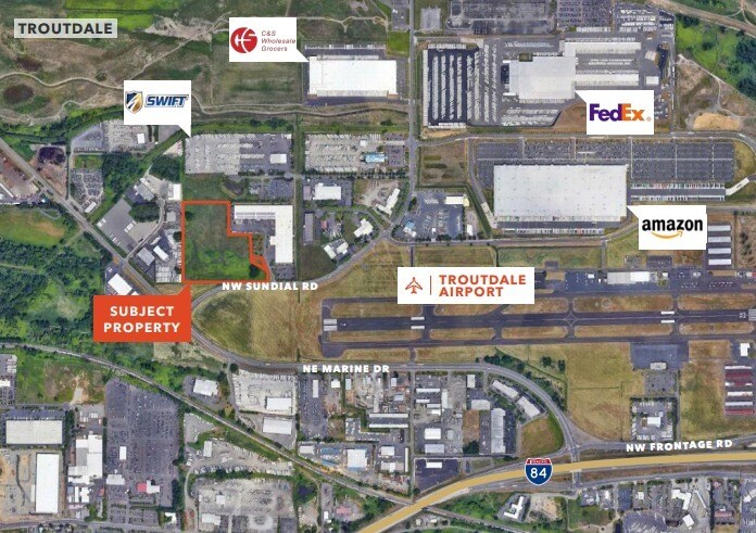 15 acres (653 400 pieds carrés) de terrain industriel généralement plat à Troutdale, OR. Tous les services publics doivent être localisés et la propriété est zonée General Industrial.
