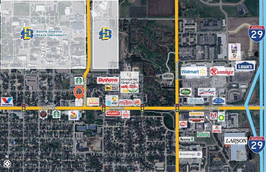 Area Tenants: SDSU, McDonald’s, HillCrest Aquatics Center, Pizza Ranch, Burger King, Buffalo Wild Wings, Arby’s, Subway, Starbucks, Jimmy John’s, & many more!