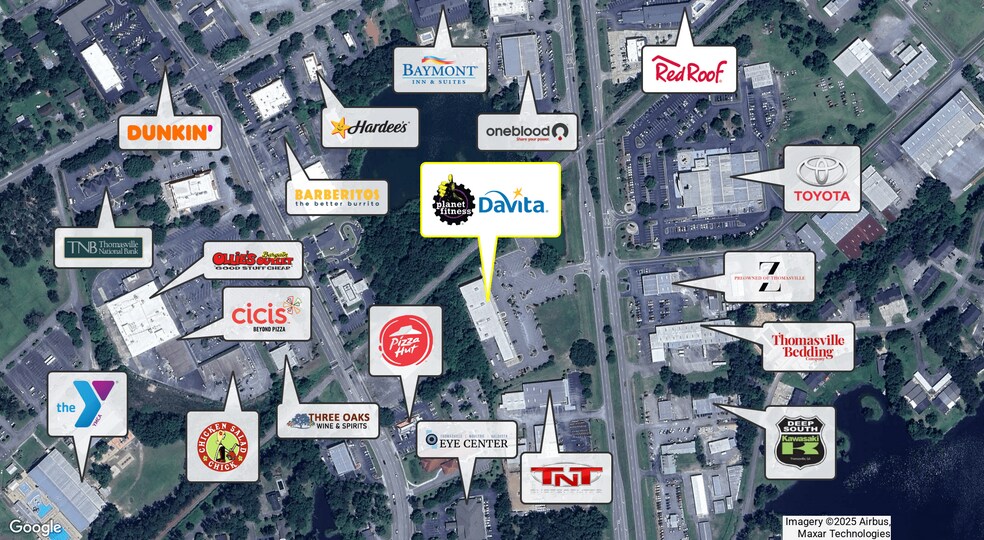 - Surrounded by a number of nearby shopping centers and outparcels: Thomas County Fire Department, Remington Ave Ball Park, Pine Tree Plaza.