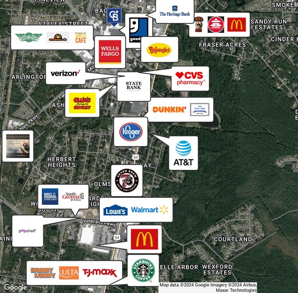 Situé au centre, à moins d'un mile de la porte principale de Fort Stewart, à l'intersection des rues General Screven Way et Hendry St. Join Planet Fitness Goodies, Benchmark Financial, Goodwill et Dollar General. Liberty Square est situé dans le quartier de superposition du centre-ville et il peut y avoir des incitatifs locaux pour créer de nouveaux emplois. Fort Stewart est la plus grande instillation du DOD à l'est du Mississippi et compte actuellement deux brigades de combat lourdes. Nous disposons d'une salle de restaurant ainsi que de 4 espaces commerciaux disponibles et pouvons accueillir jusqu'à 11 000 espaces contigus. Environ 8 700 voitures passent chaque jour.