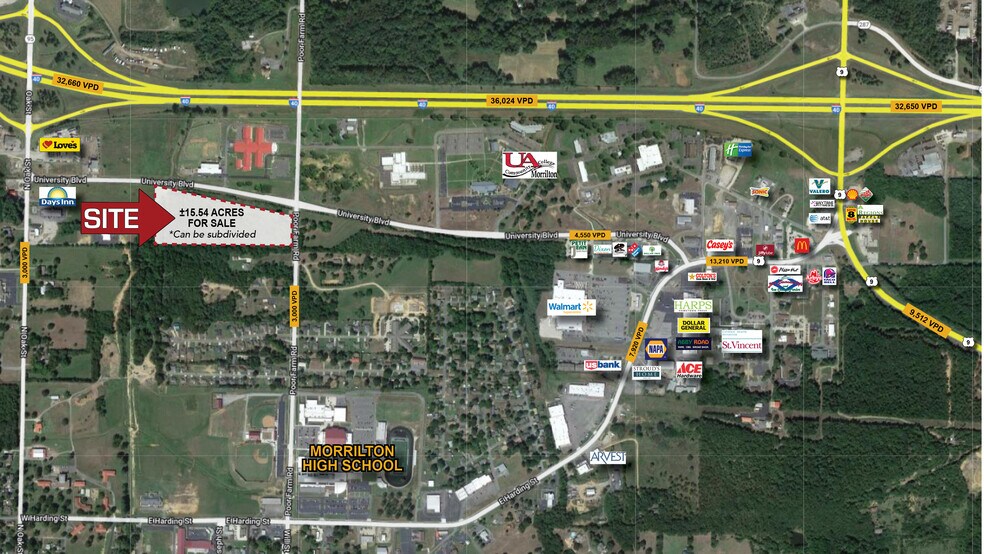 - Emplacement privilégié à l'intersection du boulevard University et du chemin Poor Farm dans la communauté en pleine croissance de Morrilton