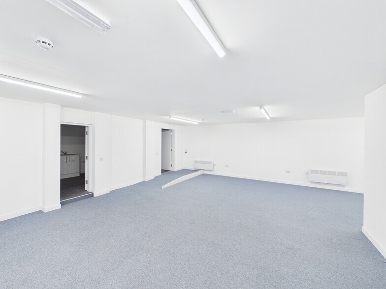 À l'intérieur, les locaux ont récemment été rénovés selon des normes élevées. Le rez-de-chaussée comprend une zone de comptoir commercial avec un bureau et des installations sanitaires à l'arrière. Le premier étage se compose d'un espace de bureau à aire ouverte et bénéficie d'un accès séparé directement depuis la rue Milton. Les locaux incluent une cour d'environ 0,2 acre, accessible depuis la rue Milton par une porte en fer.