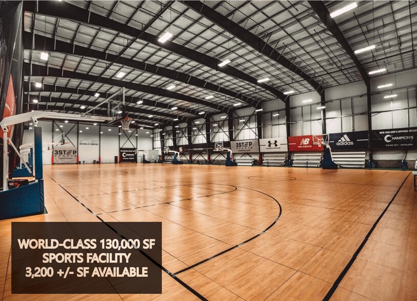 WORLD-CLASS SPORTS FACILITY 3,200 +/- SF OF TOTAL SPACE AVAILABLE PROPERTY HIGHLIGHTS TWO REGULATION SIZE HOCKEY RINKS ONE LARGE MULTI-PURPOSE TURF FIELDHOUSE 20' CLEAR HEIGHT LARGE PARKING LOT PHYSICAL THERAPY: SPORTS REHABILITATION UNLIMITED WORLD RENOWNED SPORTS TRAINER: MIKE BOYLE FOOD SERVICE: DUNKIN DONUTS & ITALIAN RESTAURANT LOCATED 1.3 MILES OFF ROUTE 1 LESS THAN 3 MILES TO I-95 INTERCHANGE